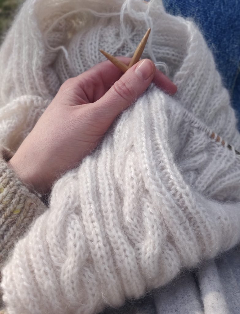 “Når jeg ser på de trøjer, jeg har strikket, så kan jeg ofte huske, hvad jeg har lavet mens jeg strikkede. Min champagne-cardigan er strikket til Astrid Lindgren på lydbog i bilen og mens børnene legede i poolen i Frankrig. Der er også en hel del P1-morgen i maskerne, og noget af af det er blevet strikket både forlæns og baglæns til Radioheads “A Moon Shaped Pool”. Jeg husker også tydeligt, hvad jeg strikkede sidste gang, jeg spillede mit livs bedste version af Juleoratoriet.” siger Ann Sophie, musiker og strikker. Vi knytter minder til maskerne, og denne koncert er en mulighed for at knytte et musikalsk minde sammen med det, vi har i hænderne.